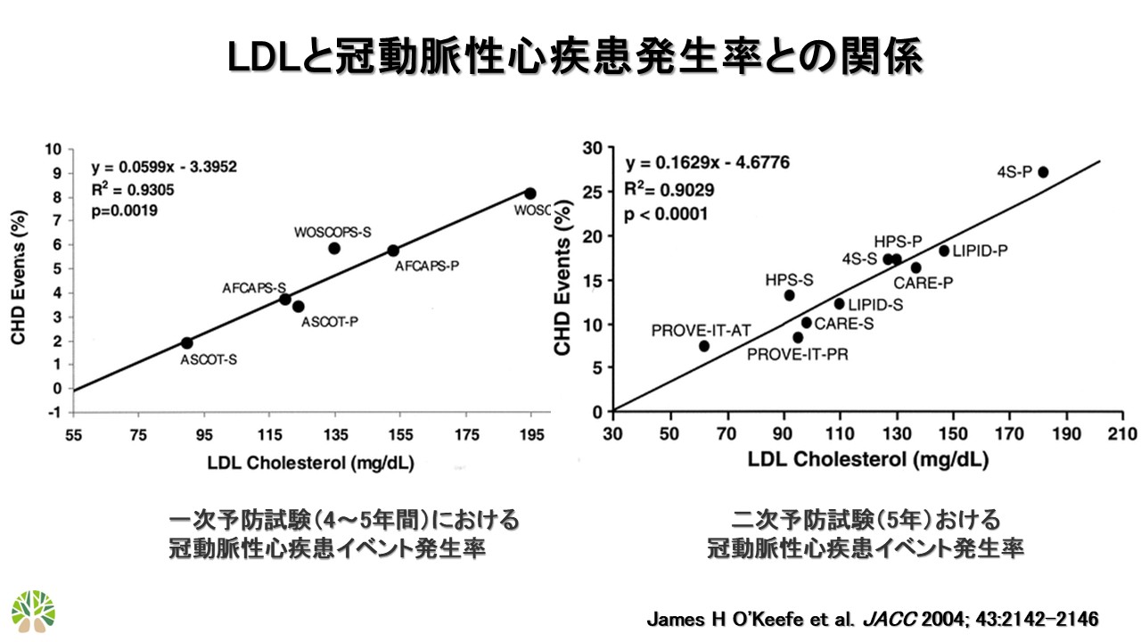 ・1次予防、2次予防のいずれもLDL値と心血管疾患の間には相関関係がある