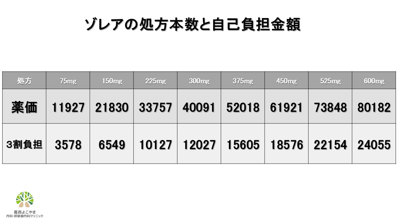 ✅ゾレア皮下注300mgペン:40091円/1本・ゾレアはIgEと体重によって投与量が異なります。