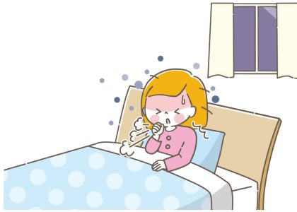 👉寝具やカーペットにたまったホコリやダニは、咳の原因になることがあります。こまめな掃除や、寝具の洗濯も大切です。