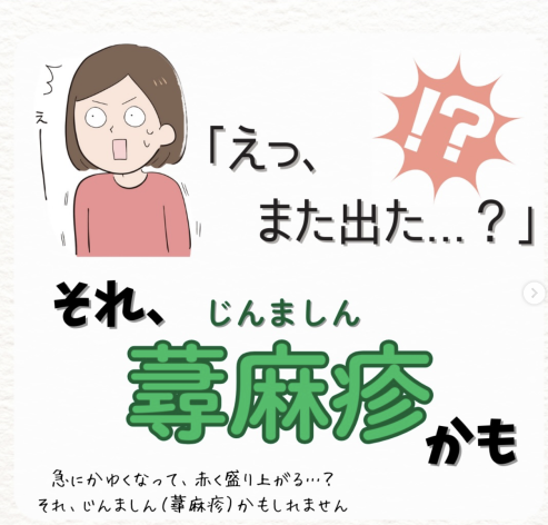 それは、じんましん(蕁麻疹)かもしれません。じんましんはよくある病気ですが、かゆみが強かったり、何度も続くと不安になります。