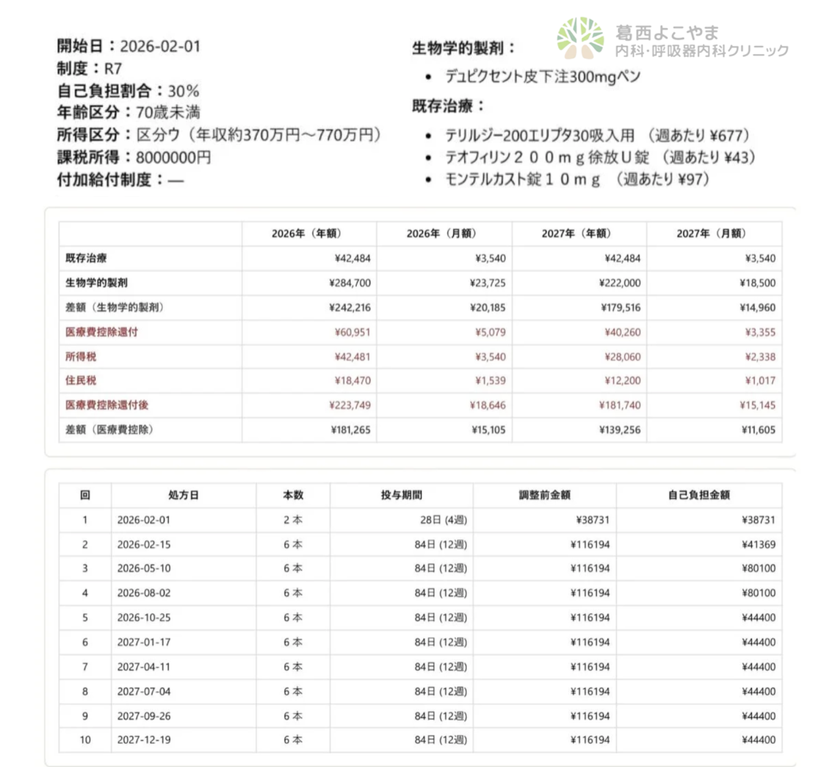 「この治療を始めたら毎月いくらになるのか」