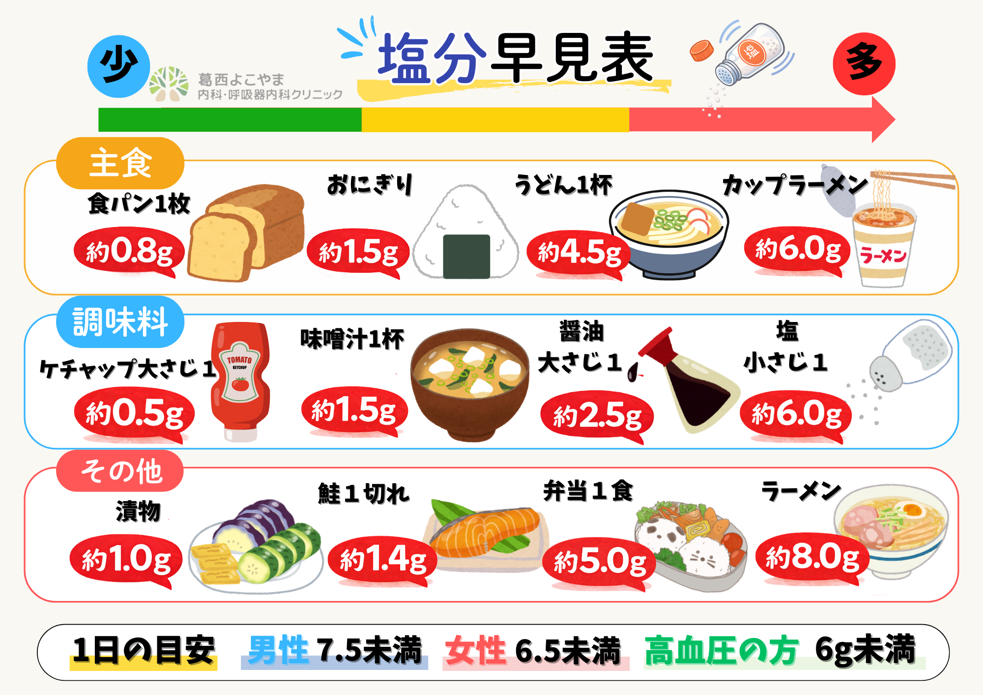 - 塩分目安は 6〜7g未満/日