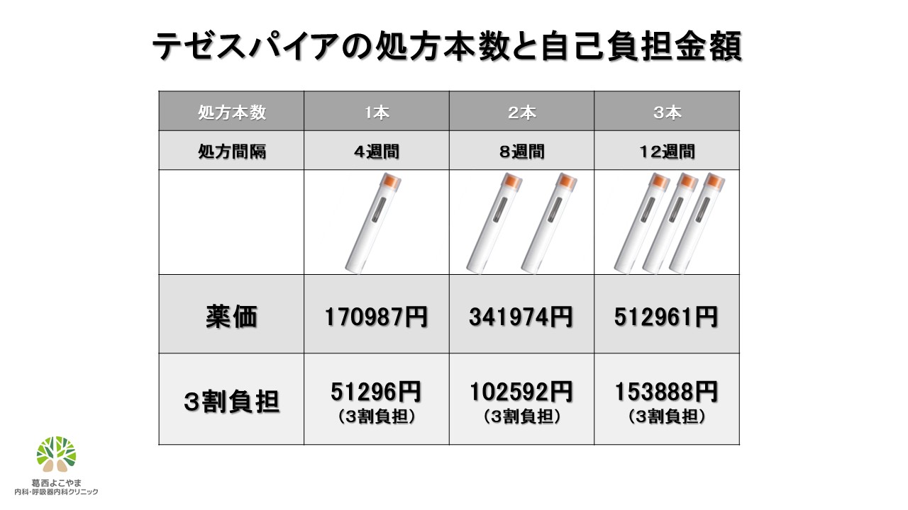 ・テゼスパイアは自己注射を行うことができるため複数本処方することができます。